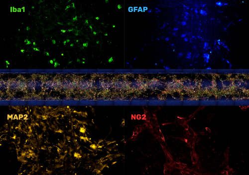 Integrates five iPSC-derived cell types from a single donor line to recreate human neurovascular biology with reduced variability and improved reproducibility.